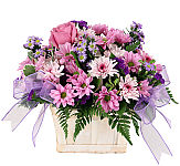 This striking arrangement may remind you of stargazing. With a glass cube vase, yellow roses, pink lilies, queen anne's lace, and more! Please note that the exact container may not be available in all cities across Canada - and may be substituted with a suitable alternative.