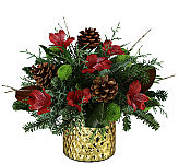 Send them some classic Christmas flair with our Last Christmas floral arrangement! Red roses and carnations with other complimenting flowers and decor are presented beautifully in a silver festive container!