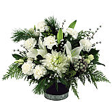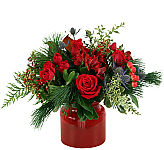 Celebrate the holiday season and ring in the new year with this classic Christmas basket! Rich greenery and stunning red flowers with all the holiday trimmings!