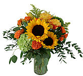Spread the joy as the fall season and fills your heart with autumn. A stunning array of seasonal colours and tones, featuring a rectangular container filled with burgundy button poms, carnations, and more!