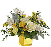 There are flowers, and then there are FLOWERS! This spectacular bouquet is the latter, bursting with sunny blooms - yellow and white roses, green mums and more. Hard to believe that one vase could hold so much beauty. Share it with someone special.