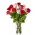 Leave her breathless with this bouquet of 18 mixed colour roses, artfully arranged in a glass cubed vase with added greens. Colours include red for love, white for purity and innocence, and pink for affection and happiness. Please note that cube vase may vary regionally across Canada.
