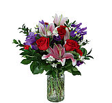 Let your Valentine know your love is forever. This simple yet striking bouquet brings together red, purple, with stargazer lilies, for a mix of passion and romance they’ll remember always.