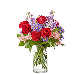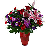 Nothing says "I love you" like this magnificent bouquet of reds, pinks and purples. This stunning bouquet includes roses, daisies, alstroemeria and stock flower. Turn up the romance!