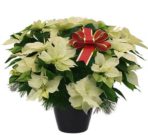 Please note, the available of white poinsettias is limited in some areas. When unavailable the colour may be substituted for red or similar.