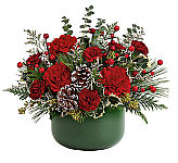 There's something about bright red carnations that just seem to 'pop out' against the whites and greens. Celebrate the holidays in style with this delightful, affordable arrangement!