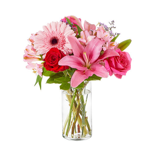 Overflowing with charm and heartfelt colour, FTD’s Lots of Love Bouquet features a radiant mix of hot pink lilies, vibrant roses, soft alstroemeria, lavender accents, and cheerful gerbera daisies. Arranged in a classic glass vase, this bouquet is a joyful expression of affection, perfect for celebrating love in all its beautiful forms.