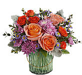 Capture the beauty of the seasons in bloom with our Simple Charm Bouquet. Gorgeous blooms such as peach spray roses, green trick dianthus, pink mini carnations and lavender cushion pompons fill a weathered wooden box with freshness. Whether you’re saying thank you to a special friend or sharing the most heartfelt get-well message, this arrangement is a breathtaking gift for your loved ones to cherish.