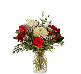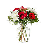 Dress the tablescape in winter wanderlust with our Snow Ball Bouquet and add an air of sophistication with the elegance of white roses. The holly lays over a white wooden box, perfect for a tasteful holiday gathering.