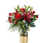 String boughs of holly throughout your home with our Winter Forest Bouquet. Anticipate dynamic movement with a diverse gathering of white roses, hydrangea, lisianthus, crimson ilex berries and wooded greenery for a dazzling holiday.