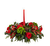 Taking traditional Christmas colors and turning up the volume to create a bright and brilliant arrangement, this fresh flower bouquet is ready to bring holiday joy to even the darkest corner of your recipient's home. Rich red roses and red carnations are accented with green hypericum berries, green button poms, clusters of shining red glass holiday balls, and an assortment of fragrant Christmas greens. Arranged to perfection in a white wash woodchip basket, this gift of flowers is ready to make a splash as a centerpiece, or when placed on the buffet table or side counter for their holiday gathering.