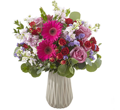 You don’t always need words to express yourself. Try saying what’s on your mind with our Sweet Memories Bouquet. Comprised of gorgeous gerbera daisies, multi-hued roses, stock, myrtle and statice, this stunning bouquet placed in a soft gray textured ceramic vase, is sure to deliver a loving message the recipient will never forget.