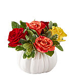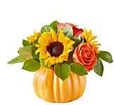 There is no need to go to the pumpkin patch this year with this gorgeous arrangement of seasonal stems artfully arranged in a pumpkin vase to deliver some happiness.