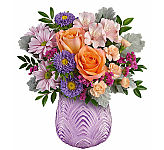 Capture the beauty of a sunset with the Sunset Serenade Bouquet! A cheerful mix of vibrant pink alstroemeria, peach carnations, and lavender mums comes together in a clear glass vase, creating a joyful burst of colour. Perfect for celebrating Mother's Day, birthdays, or simply brightening someone's day with a touch of warm, sunset-inspired charm!