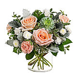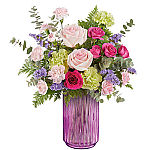 Bright, cheerful, and full of charm, the FTD Sweet As Can Be Bouquet is a delightful mix of pink roses, spray roses, mini carnations, and button mums, accented with lush greenery and soft dusty miller. Presented in a clear glass vase, this sweet and stylish bouquet is perfect for birthdays, thank-yous, or just because.