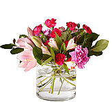 Bright pink blooms mingle among an assortment of lush greenery to create Watermelon Punch. As the weather warms up, give this vibrant floral arrangement to brighten up a friend's home, say thank you or simply celebrate the season.