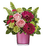 The FTD® Enduring Peace™ Basket is bursting with grace and sweet elegance to honour the life of the deceased and offer comfort to the friends and family suffering from their loss. White freesia pop against a bed of pink gerbera daisies, roses and mini carnations, gorgeously accented with lush greens and arranged in a small oval whitewash willow basket, to create a beautiful way to convey your deepest sympathies.