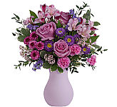 When you need to say a little more, say it with the Abundance Bouquet. Comprised of lavender roses surrounded by vibrant greens and purples, the beauty of this bouquet is just bursting right out of a muted green ceramic vase with a gold metallic finish.