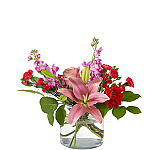 Timeless blooms and classic Valentine shades create the Head Over Heels Bouquet. The moment this arrangement arrives and the fresh fragrance of lilies, roses and eucalyptus fills the air, your special someone will be reminded of all the reasons they fell for you in the first place.