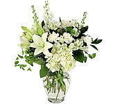 A thoughtful tribute for someone who is always in your heart. This all-white classic design features mums, snapdragons, carnations and more.