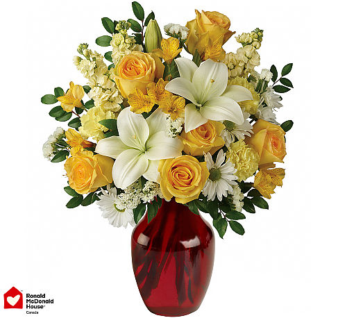 With every purchase of this special arrangement, you're not only bringing home a touch of nature's beauty but also contributing to a cause that truly matters. We're proud to pledge that 15% of the proceeds from this arrangement will be directly donated to Ronald McDonald House Charities Canada.
