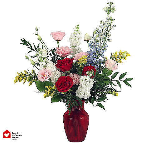 With every purchase of this special arrangement, you're not only bringing home a touch of nature's beauty but also contributing to a cause that truly matters. We're proud to pledge that 15% of the proceeds from this arrangement will be directly donated to Ronald McDonald House Charities Canada.