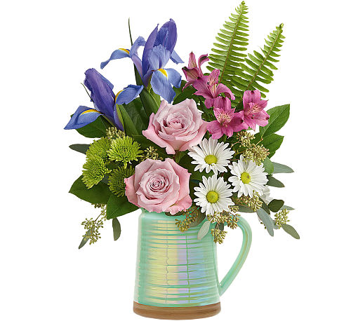 Serve up spring cheer with this fresh, nature-inspired bouquet, presented in a pretty-meets-practical ceramic vase with an iridescent glaze that's food safe for years of entertaining!