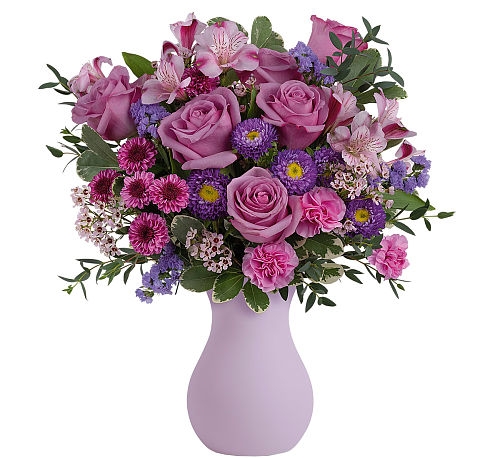 Pretty as a picture, this perfect purple bouquet spoils your someone special with lavender roses and a graceful frosted glass vase.