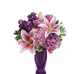 Make all their spring dreams come true with this lush lavender and green bouquet, presented in a breathtaking aqua glass with a lustrous iridescent finish..
