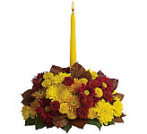 This elegant bouquet features creamy peach roses, gold cushion chrysanthemums, bronze disbud chrysanthemums, bupleurum, seeded eucalyptus and oak leaves, delivered fresh to the door in an attractive cube vase.