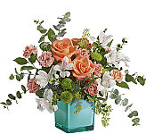 Soft, sunshiny blooms and a sparkling silver vase combine to striking effect in this magnificent bouquet. Its yellow and peach roses and keepsake vase are sure to make them smile, no matter the occasion!