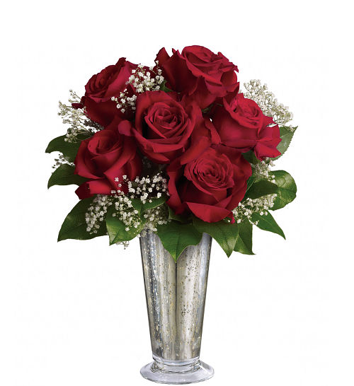 True love. Sweet love. Beautiful love. Celebrate all flavors of love with this elegant arrangement of roses hand-delivered in a stunning silver Mercury Glass Vase.