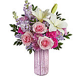 An extravagant gift like this one is always appreciated. An eye-catching display of roses and lilies is perfectly arranged in a feminine vase which makes a beautiful and lasting impression. Elegant white roses and sweet pink asiatic lilies are hand-arranged with greens. It's the perfect way to show her that she is loved always and forever.