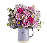 Treat them to a day at the shore, in the comfort of their home! This invigorating mix of yellow roses, white lilies and blue delphinium captures the spirit and shades of the shoreline. Hand-delivered in a bold blue ginger jar, it's a delightful gift any time of year!