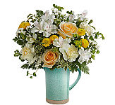 Make her dreams come true with this ethereal bouquet, presented in a stunning Mercury Glass hurricane. Beautiful snow-white lilies, lavender roses and a bright blue hint of delphinium create a dreamy declaration of your affection she'll never forget.