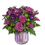 Romance buds in the spring - and it blooms beautifully in this charming bouquet of tulips and alstroemeria. Presented in an elegant hurricane vase, it's a heartfelt gesture she'll remember through all seasons.