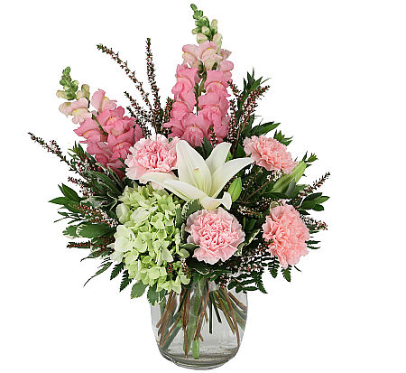 I love you to the moon and back! This delightful original features an array of flowers in pinks and greens! To include Lilies, hydrangea, snapdragons and more!